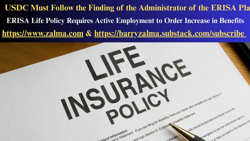 USDC Must Follow the Finding of the Administrator of the ERISA Plan