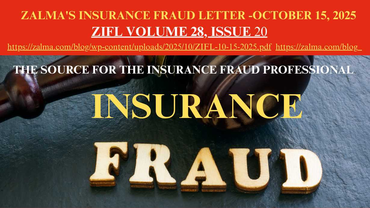 Zalma’s Insurance Fraud Letter (ZIFL) is published 24 times a year by ClaimSchool and is written by Barry Zalma. It is provided FREE to anyone who visits the site at https://lnkd.in/gVT5G9s